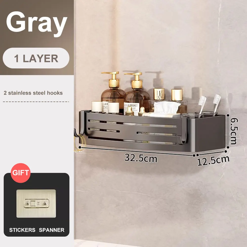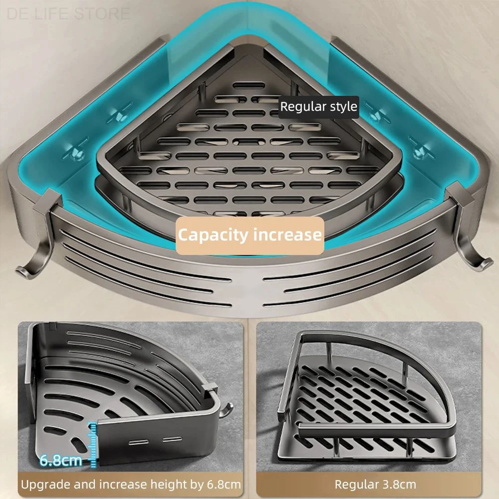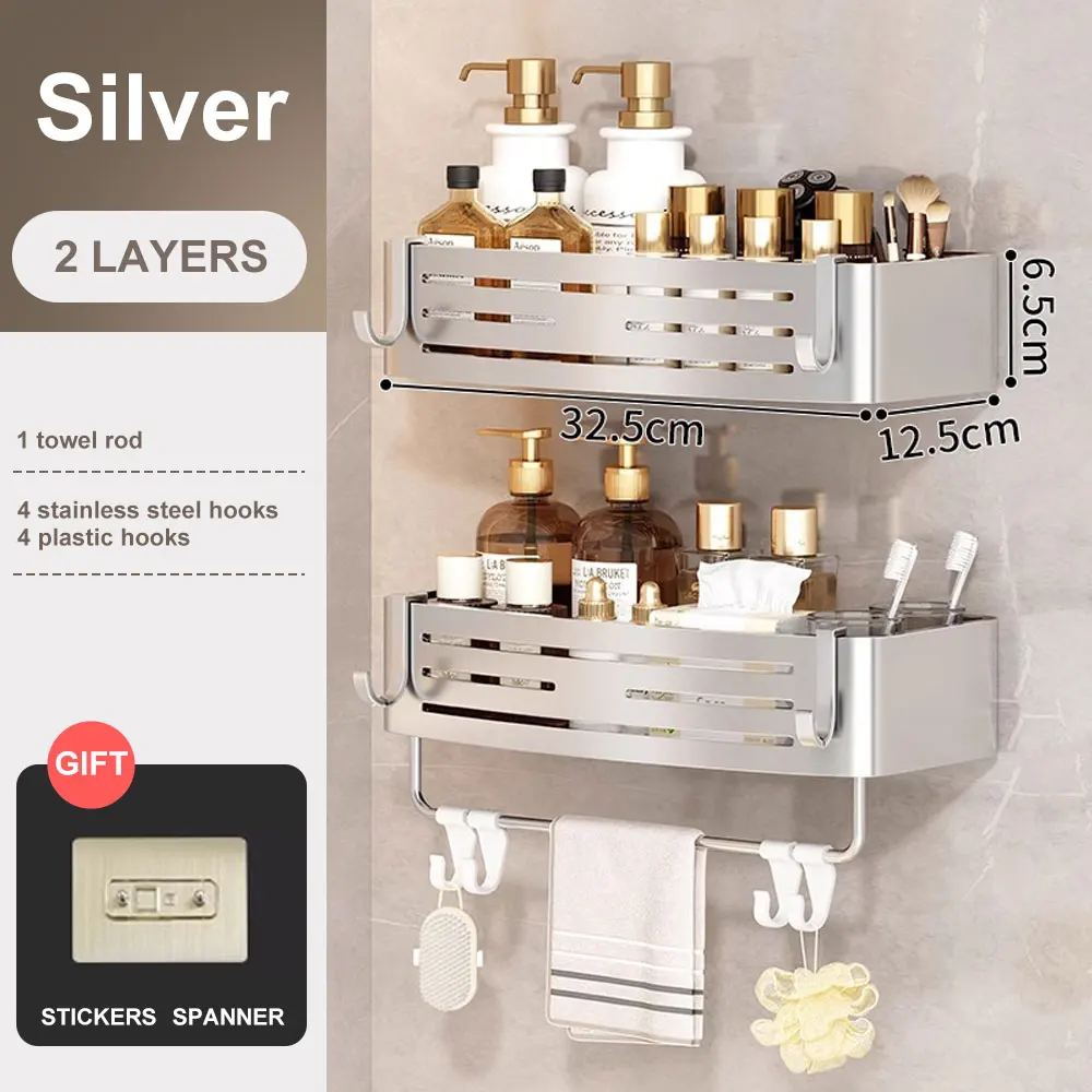 Designed for optimal storage capacity, our corner shelf provides ample space to accommodate a variety of bathroom essentials, freeing up valuable bathroom space. Each shelf comes with two hanging hooks and a towel bar for added convenience.