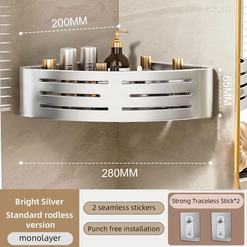 With enhanced load-bearing capacity, our shelf features thicker materials and utilizes strong, traceless adhesive. You can confidently press your shampoo bottles onto the shelf without worrying about them falling off.