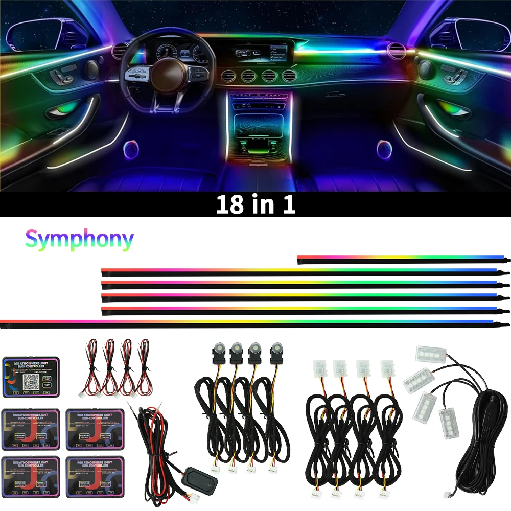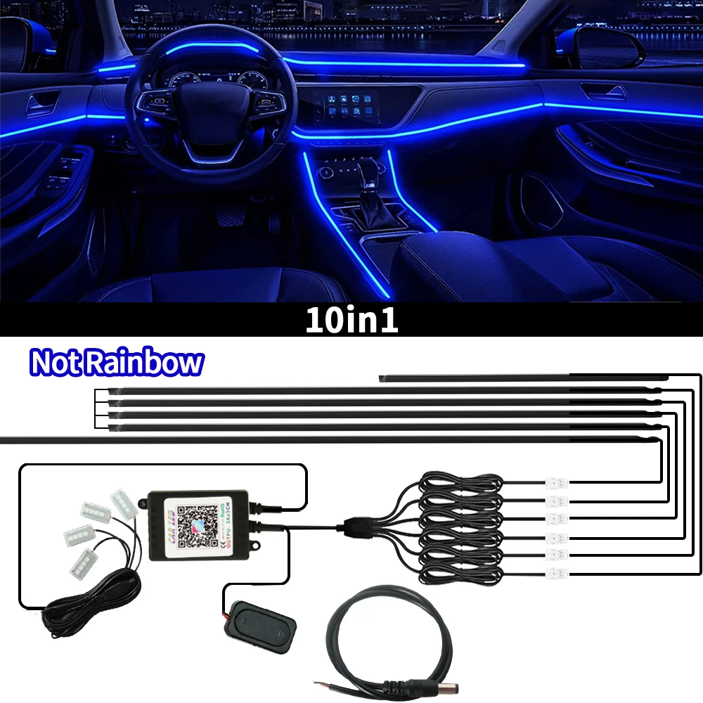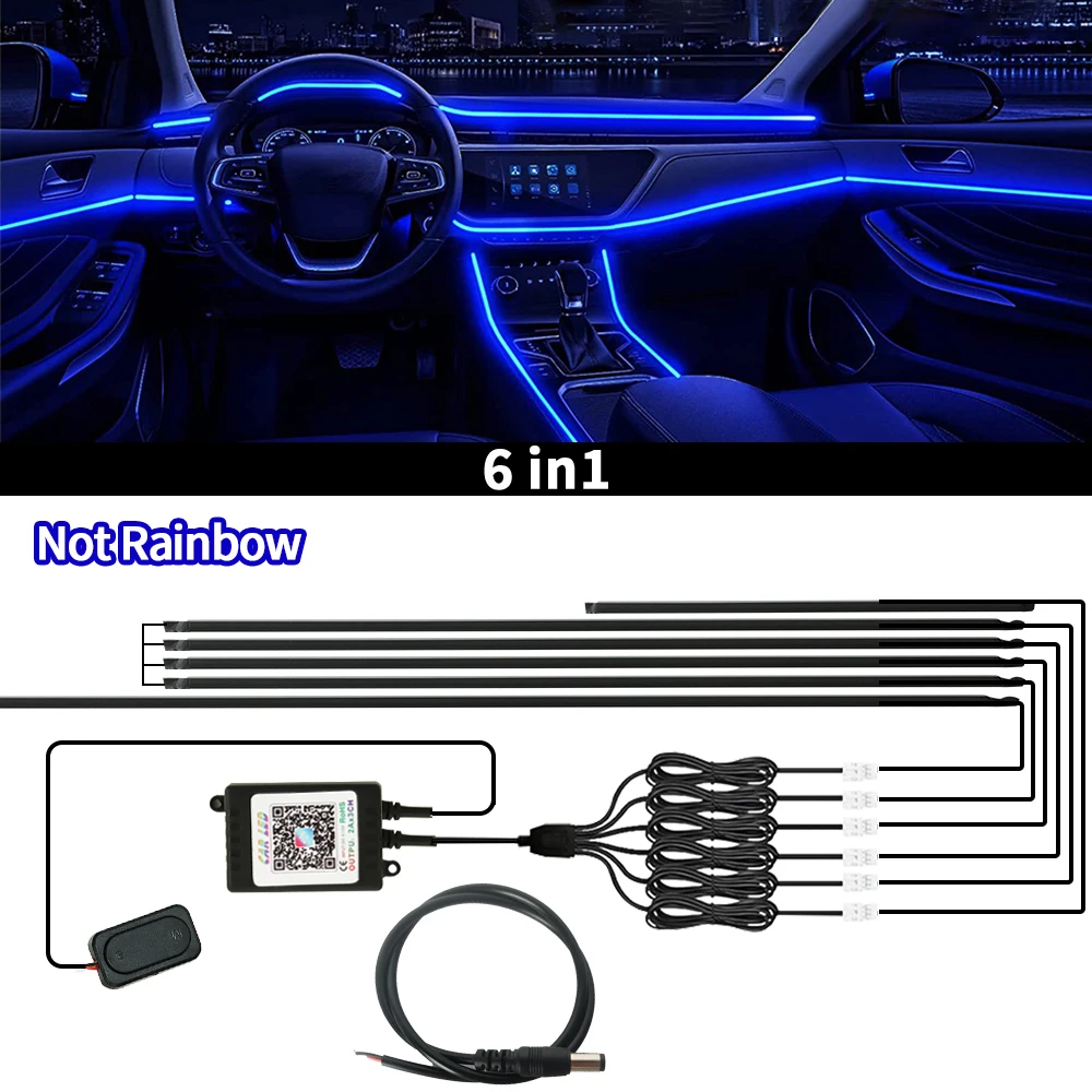 6/10/18 In 1 Car Acrylic LED Ambient Lamps Universal Colorful Atmosphere Lights Auto Interior Neon Strip App Control 64 Colors RGB Lighting Strip