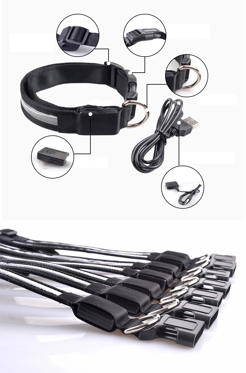 Engraved ID LED Dog Collar Luminous USB Custom Dog Tag Personalized Nylon Pet Dog Collar Led USB Light Night Safety Collar Perro