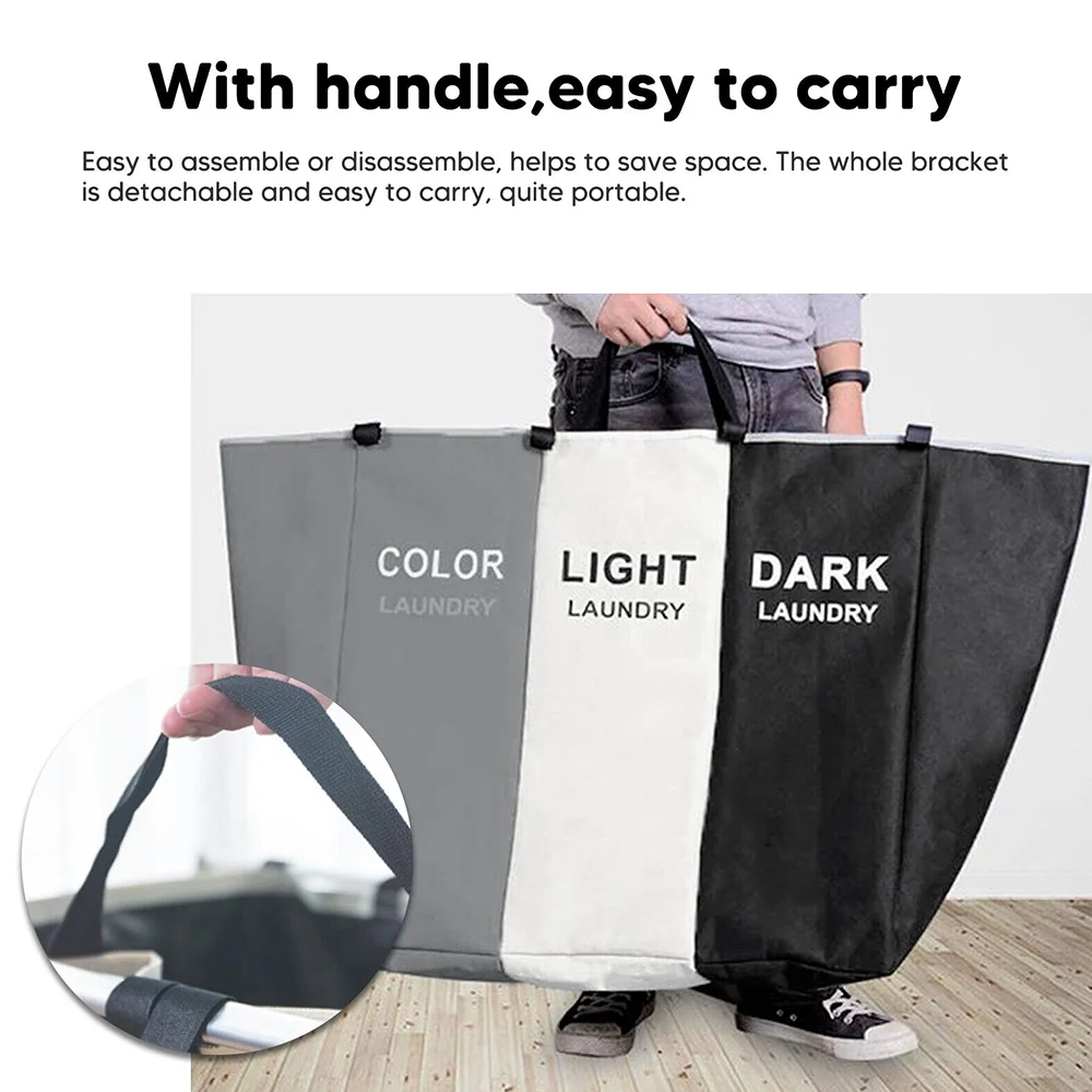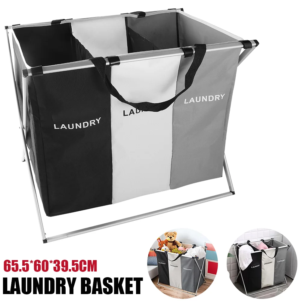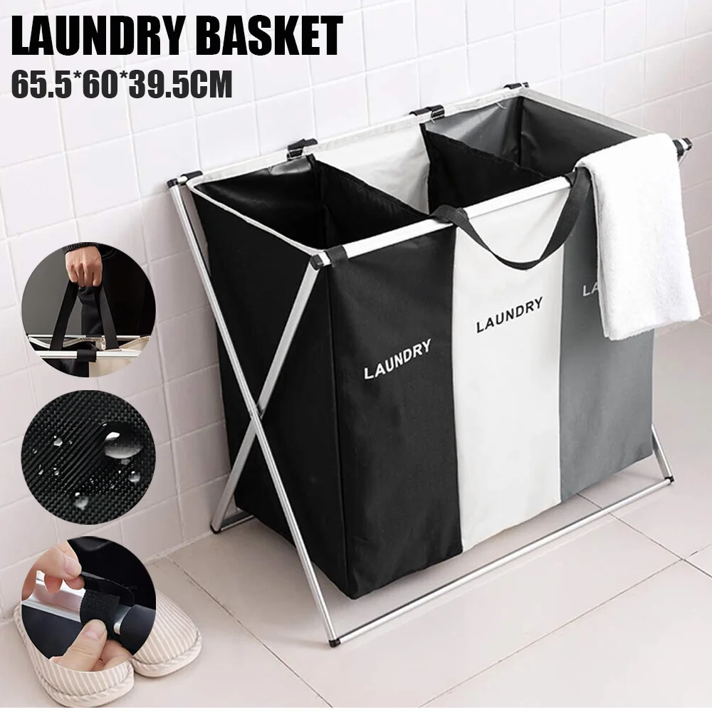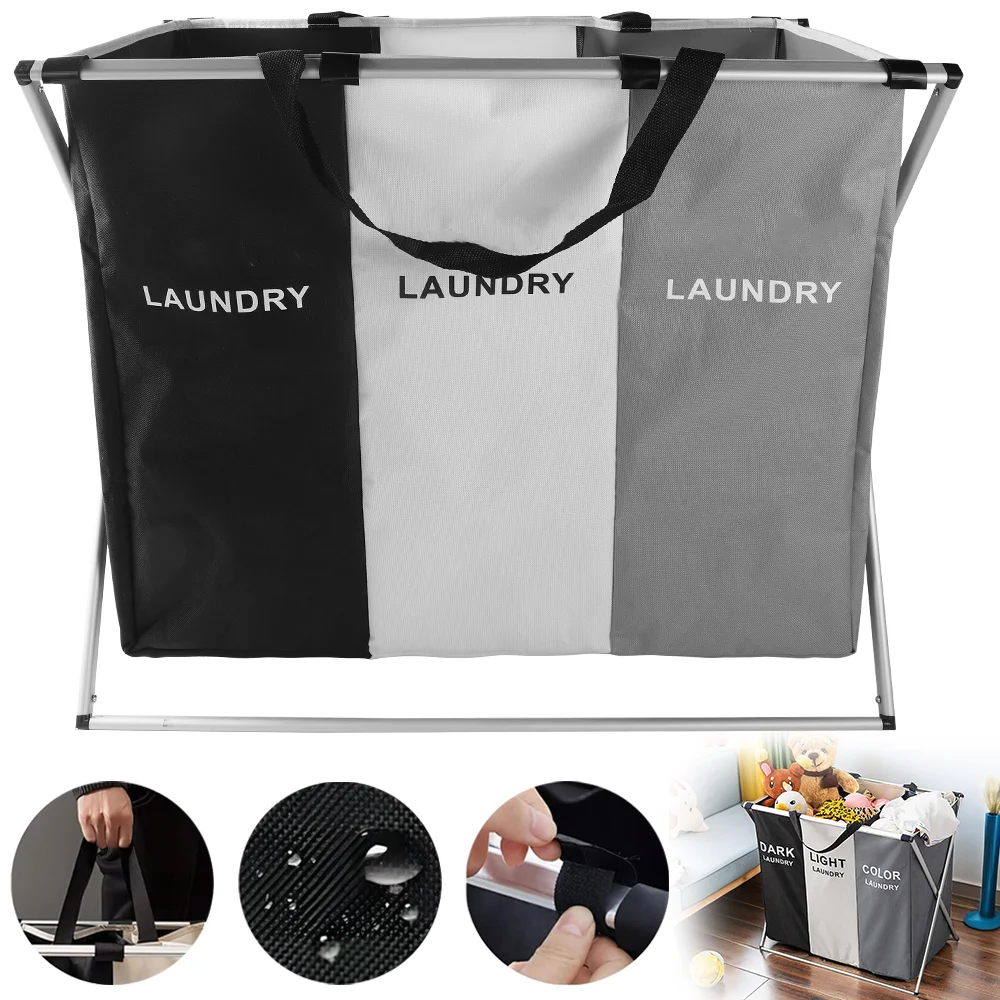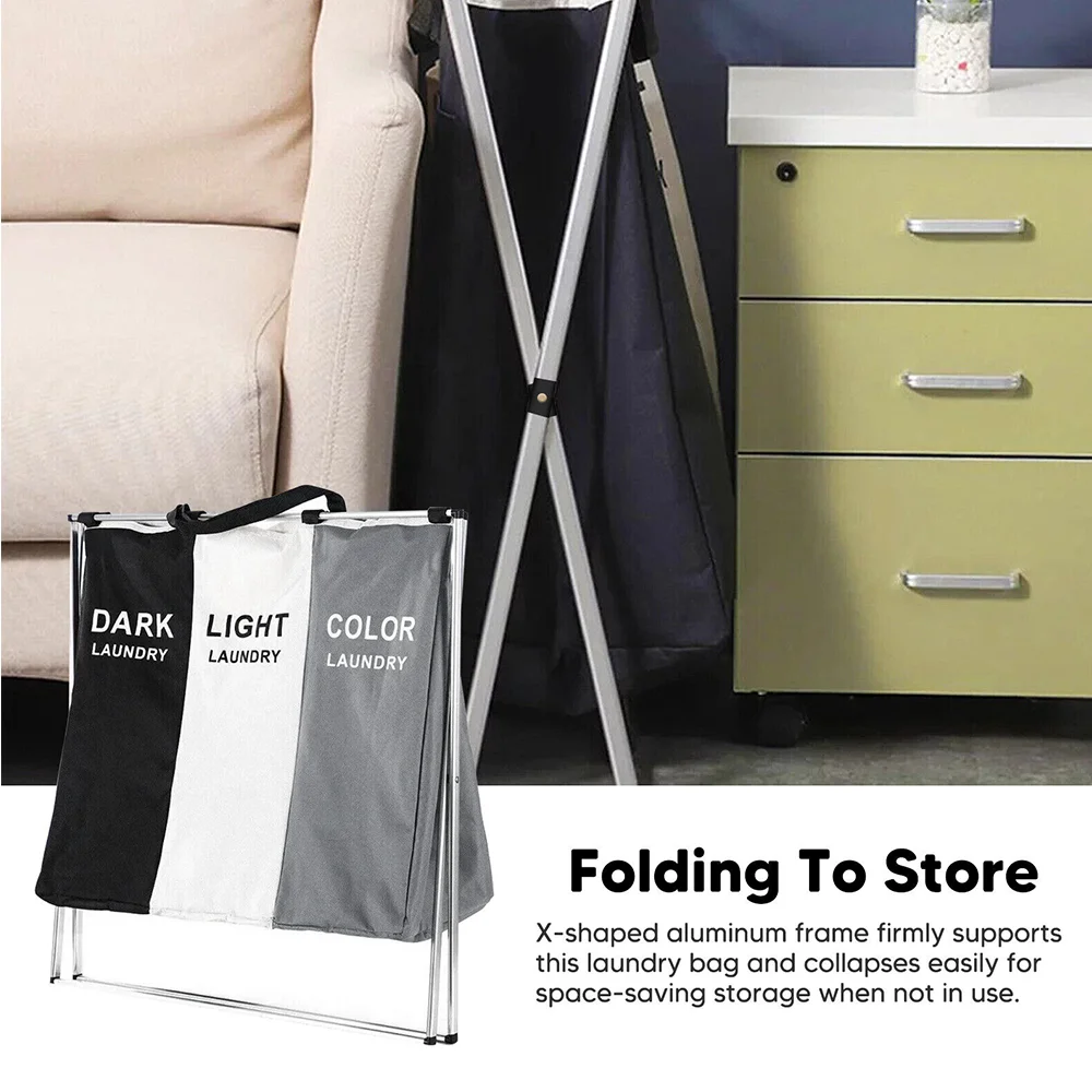 Laundry Basket Large Capacity Laundry Hamper 3 Sections Divided Storage Basket Foldable Washing Bin Dirty Cloth Storage Bag