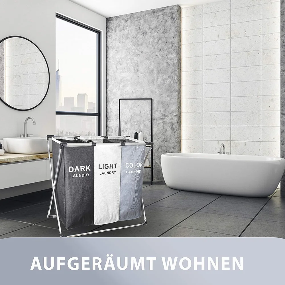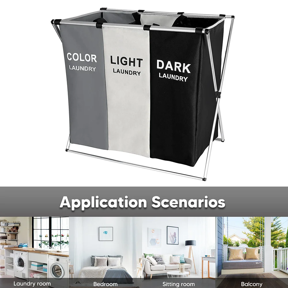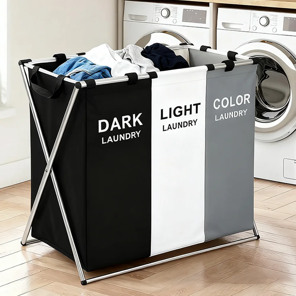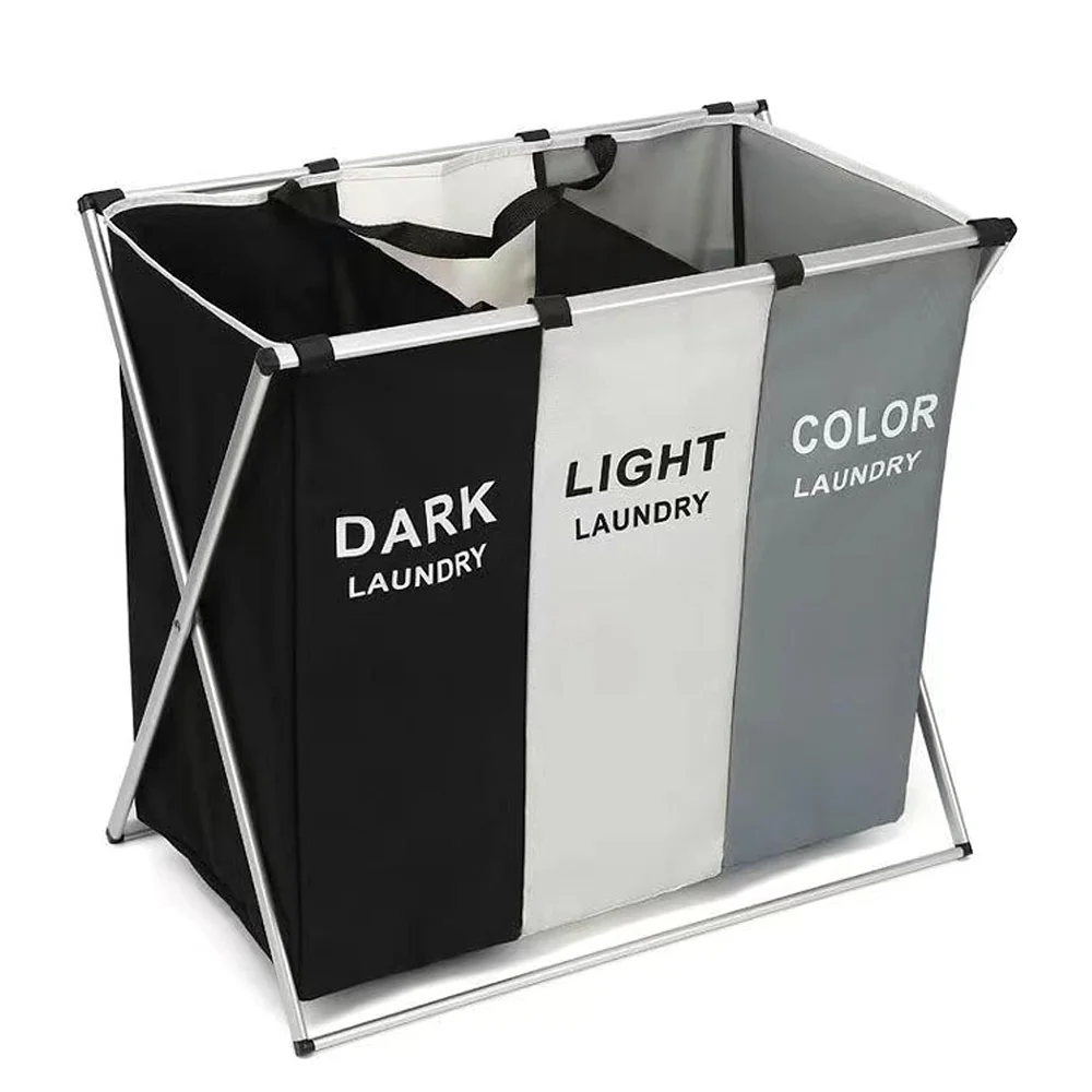 Laundry Basket Large Capacity Laundry Hamper 3 Sections Divided Storage Basket Foldable Washing Bin Dirty Cloth Storage Bag