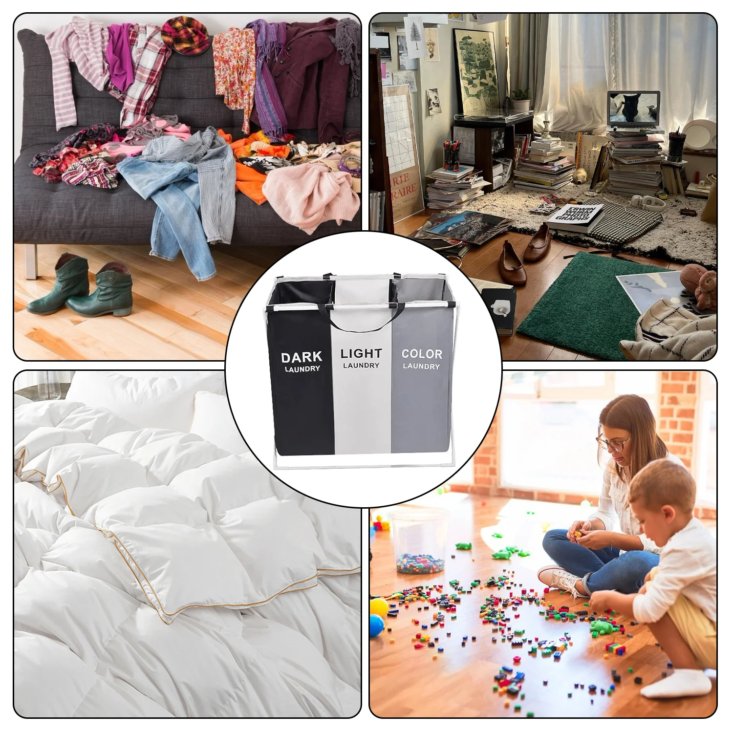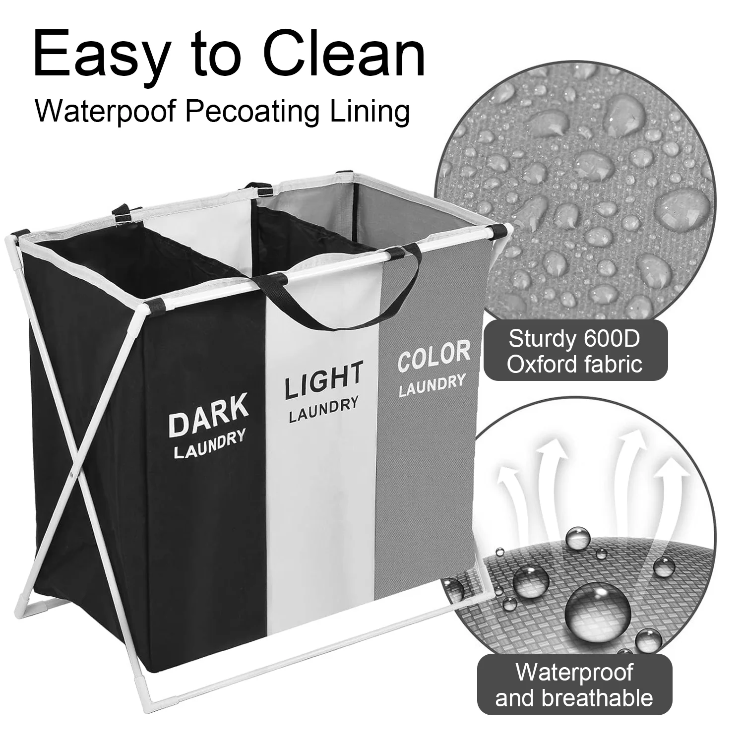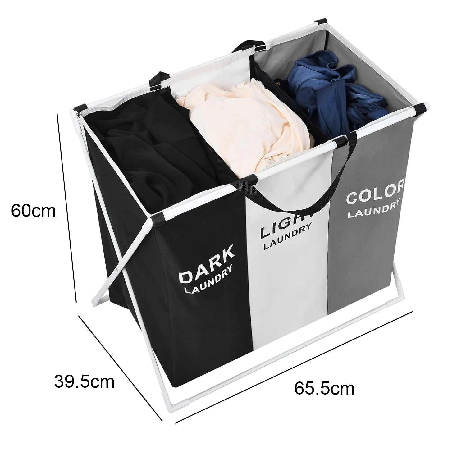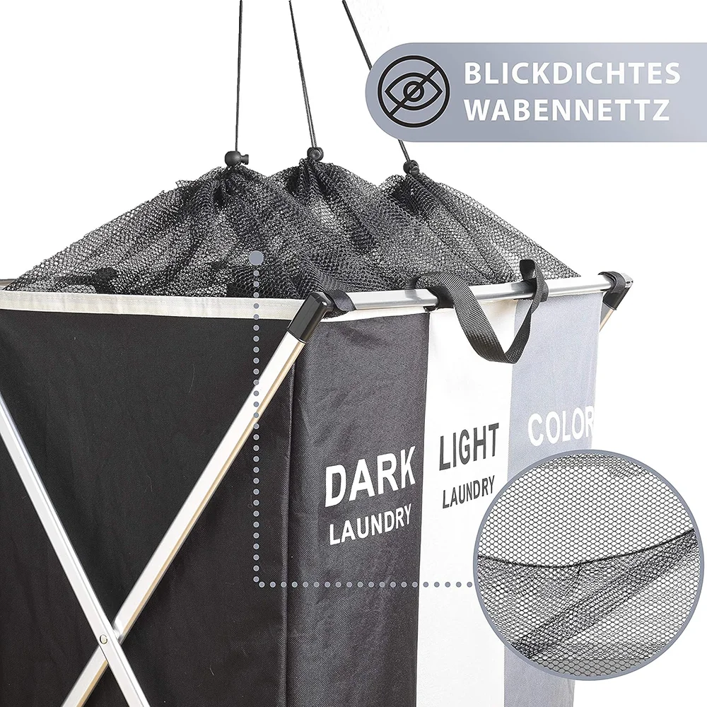 Laundry Basket Large Capacity Laundry Hamper 3 Sections Divided Storage Basket Foldable Washing Bin Dirty Cloth Storage Bag