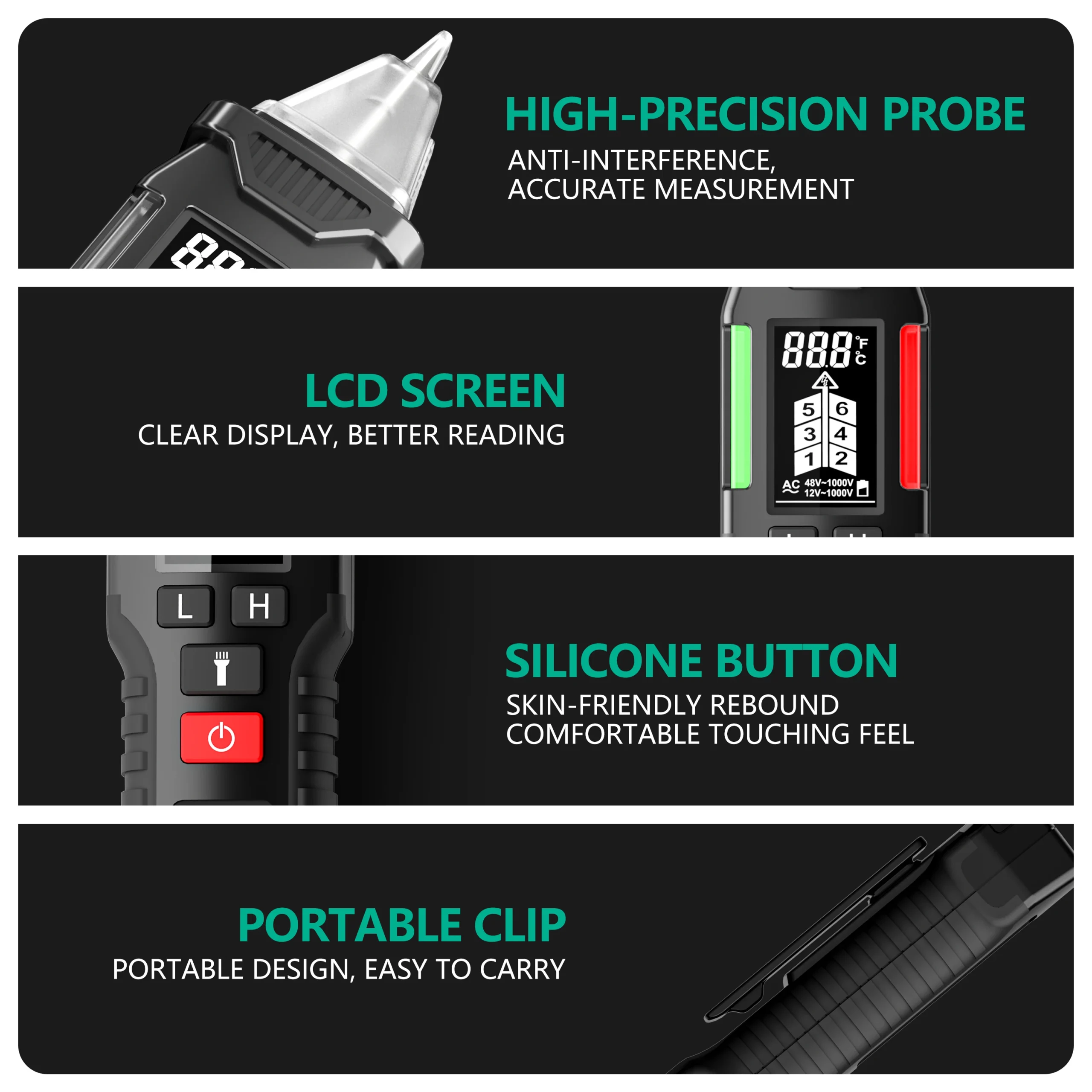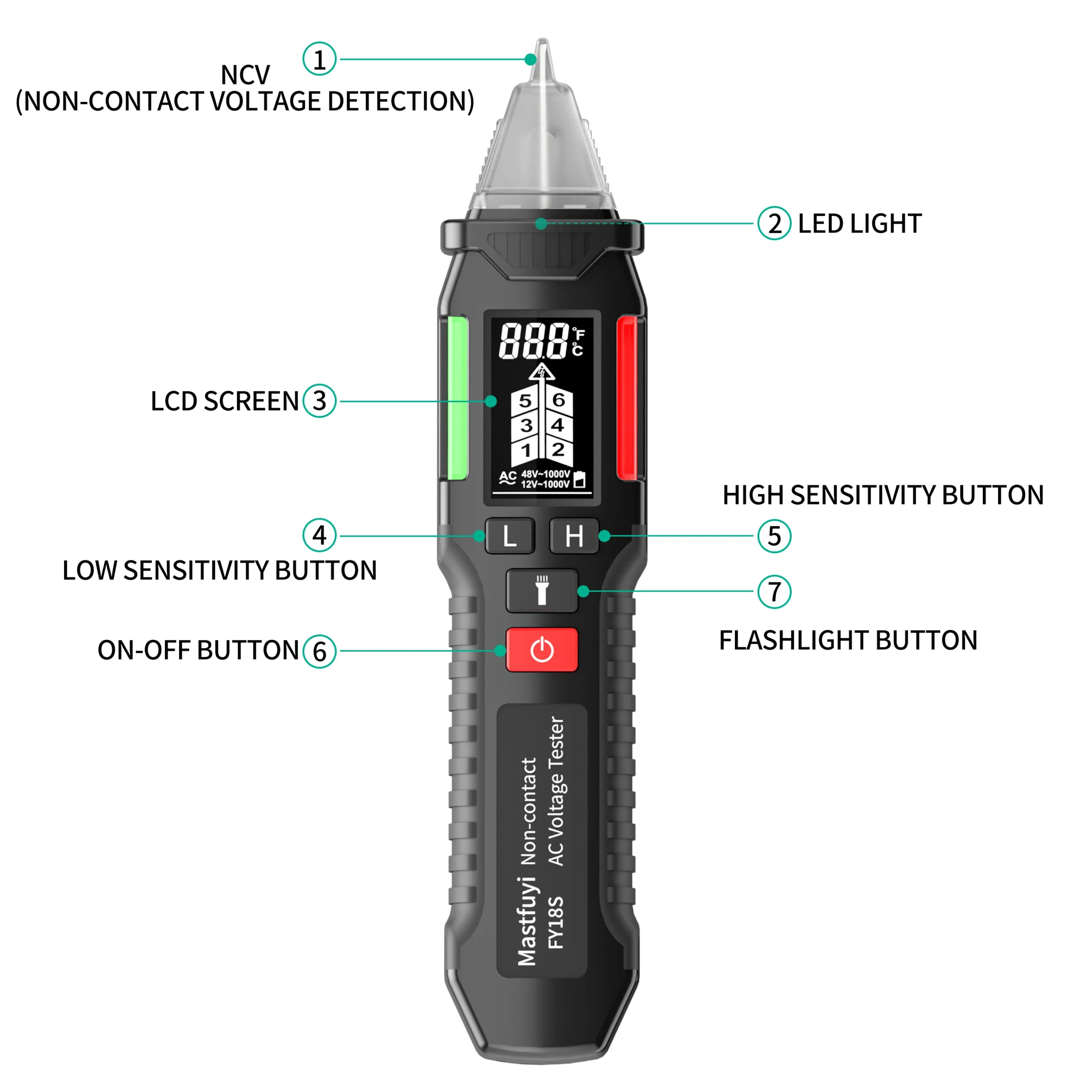 AC Voltageetection range: H:High sensitivity(12V-1000V) L:LOW sensitivity(48V-1000V)