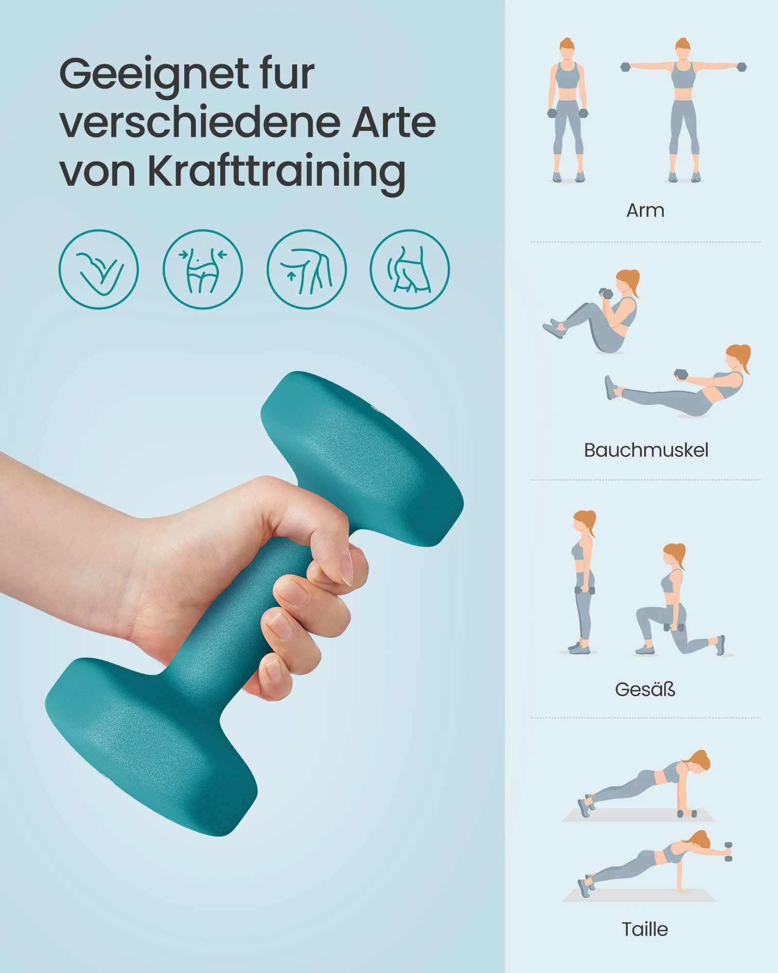[Is securely in the hand] The optimally shaped handles with soft rubber sheath increase the grip of the dumbbells and effectively avoid slipping, so that sweaty hands are no problem with dumbbell training