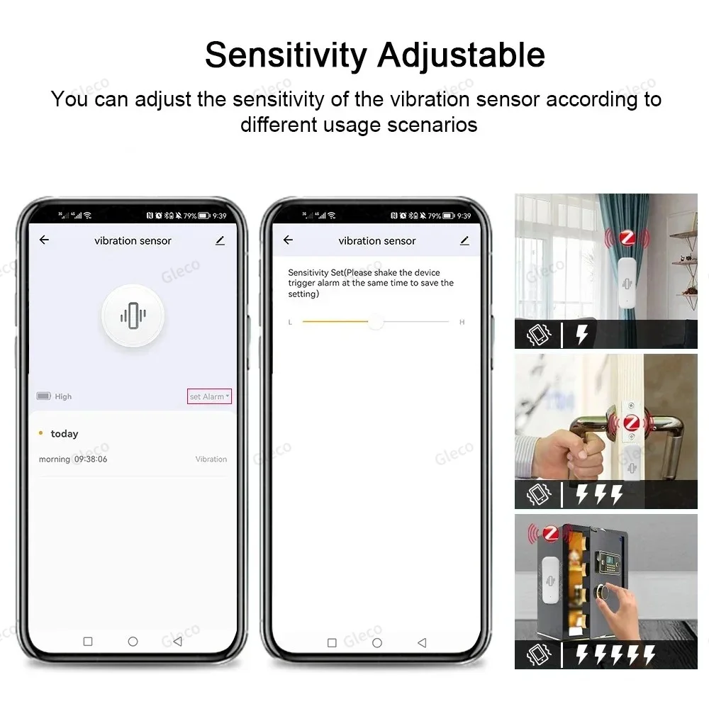 Sensitivity levels can be easily adjusted through the app, making the sensor suitable for different environments—doors, windows, safes, cabinets, garages, warehouses, or commercial spaces—reducing false alarms while ensuring accurate detection.